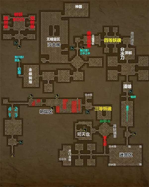 全图基本上不存在不掉妖魂的区域,只是几率问题,标注了妖魂的地方是我从这个房间起且之后的区域都获得过该妖魂,可能不一定特别准确,仅供参考。