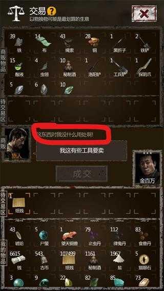 如果中途休息,一定要买到路线图去挂机探索,商人处优先买火油,盐,朱砂,基础材料后面的话会越来越富余。