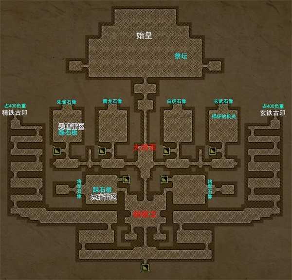 精铁/玄铁古印:开门用的,需要占400负重,背包不够的话去的路上可以先把一部分干粮放在沿路本来就有的尸体/罐子/棺材里(被你打死的怪不能放),回程可以边走边吃。【放在里面的东西下次进图也能拿回来】