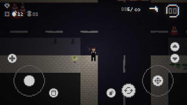 1、打开僵尸危机3手机版,点击屏幕任意位置开始,游戏内如图,玩家需使用手枪来消灭地图中的僵尸