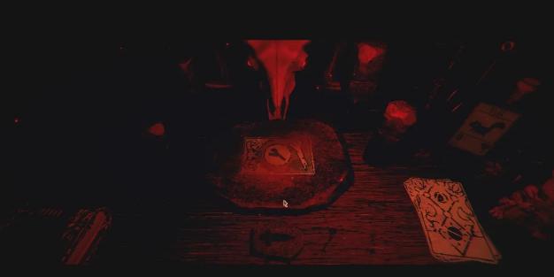 8、在8~9周目时,门右侧摆放猎人棋子的桌子下方的长方形盒子里会出现一张神秘卡牌(只露出右上角),拾捡时突然视觉受到干扰,卡牌就消失了,以至于本人没来得及截图。似乎卡面上画着一个独眼黑色人,右上角有个罗马数字三,应该不是常规的造物牌。不确定触发条件,可能与油画和挂钟有关。