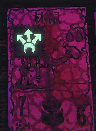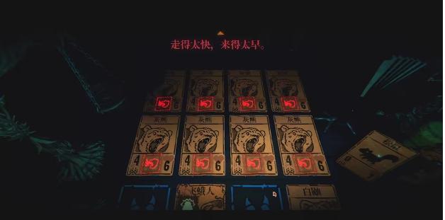 4、门左边的卡牌柜可以用保险箱里的钥匙打开,多周目只用解锁一次。卡牌柜的每个抽屉上都有一个解谜小机关(上下移动卡牌位置使一回合打满5点伤害,很简单),解开后就能打开抽屉获得里面的卡牌,同时触发黑怪对话。注意,抽屉里的卡多周目里只能拿一次,拿取后立即加入当前卡组,以后周目这些卡会在选牌环节随机出现。试玩版里卡牌柜只有两个抽屉,左边放了“石龙子”,右边放了“蚁后”和“工蚁”。但在预告片里一闪而过的牌柜似乎有四个抽屉。
