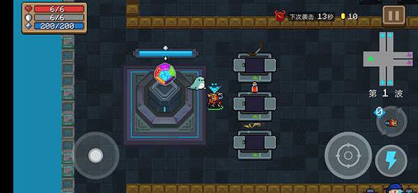 进入古代遗迹之后,面前会有三个刷新免费武器的位置,上下两个位置固定为刷新武器,中间的位置固定为刷新药剂,不过值得注意的是,三个位置只能选择一个拿取,一旦一个位置被拿取了,另外两个位置会直接消失,并且这三个位置会在每两波的中间休息时间刷新,如果一直不拿取,休息时间一到就会直接消失,所以一定要及时拿取。在这里,我们前期优先选择散弹类武器拿取,如:骑士之拳、绿色/红色响尾蛇、火焰机枪,等武器,没有的话尽量选择高射速武器,提升自己的输出。
