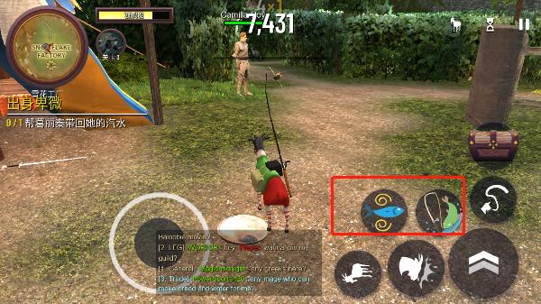 3、开始游戏接受任务,先点击牵物品的图标,然后轻触可以将水保存到物品的箱子;