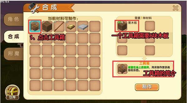 2、加工出木板后在合成界面就可以制作工具箱了。