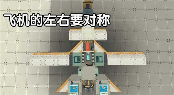 4)想要让飞机在飞行过程中达到平衡前进,首先我们要注意的是,飞机的左右两边要对称(飞机的两侧方块数量和摆放位置相同)