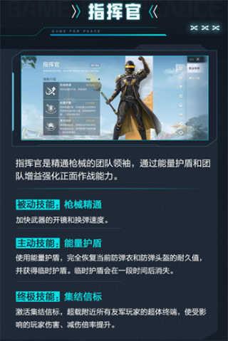 指挥官介绍指挥官是精通枪械的团队领袖,通过能量护盾和团队增益强化正面作战能力。