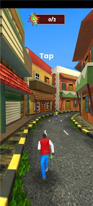 4.看见道路中的酒瓶子我们可以获取,并双击屏幕可以将酒瓶子扔出去,这个时候强盗的血量会降低;
