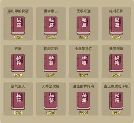 在暴走大事件副本中,阿宅总共可以选择12本秘笈来强化自己的实力。