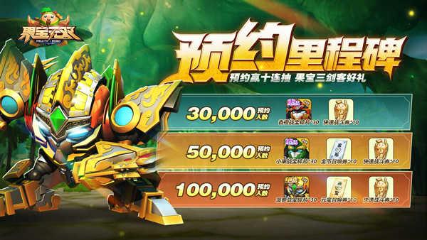 预约人数达成10W:《果宝特攻》3代-绝品菠萝战宝碎片*30,元宝召唤券*10,快速战斗券*10