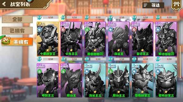 这里是查看机甲的界面,在这里可以分类查看自己所拥有或者未拥有的机甲。