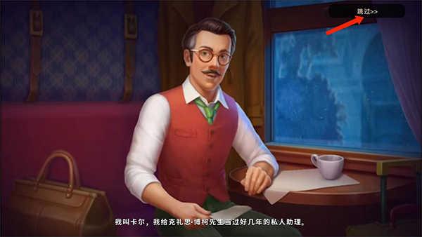 2、进入游戏剧情界面,我们选择右上角【跳过】即可,