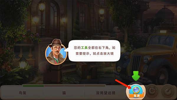 9、我们还可以使用【放大镜】来帮助自己更快的找到物品,可看到,使用放大镜后会有提示,