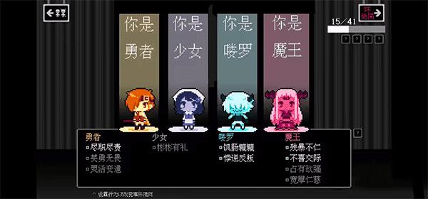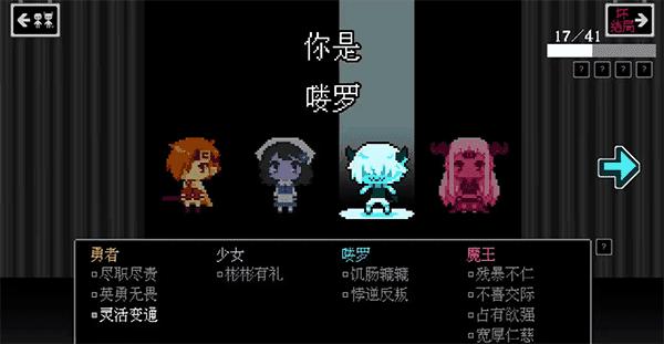 7、玩家可以在这两个回答中选择一个,他就会带你去见魔王;当选项上面出现四个字,而你恰好选择了它,等结局之后你就会发现人物的下方就有这四个小字;