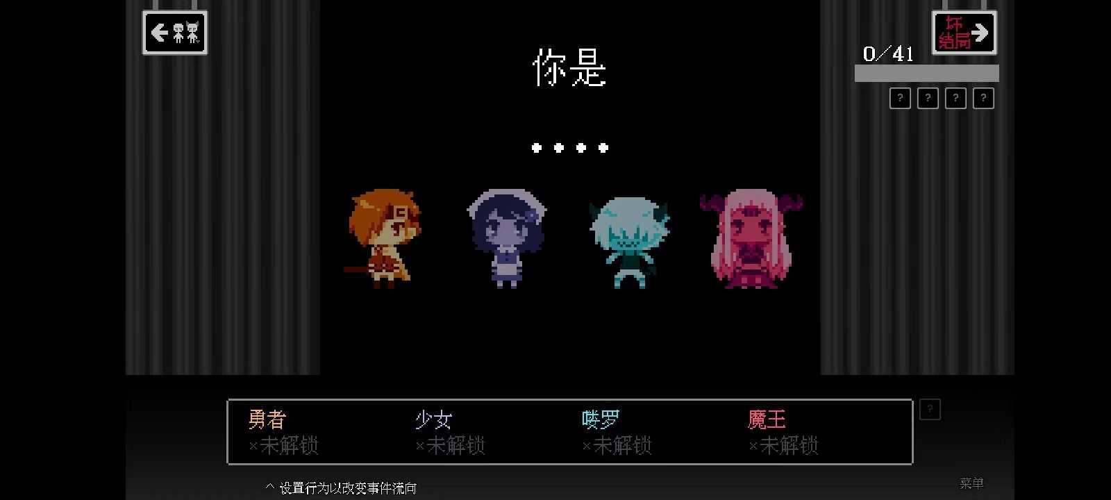 这时候如果你要挑战悲剧(boss)的话,建议你收集完41个坏结局以后,因为彩蛋就在它的后面。