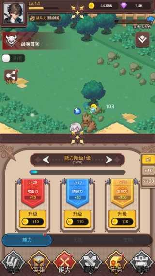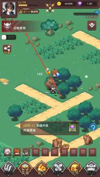 5.点选下方功能栏中的“英雄”选项,就可进入英雄培养页面,提升角色的能力值。