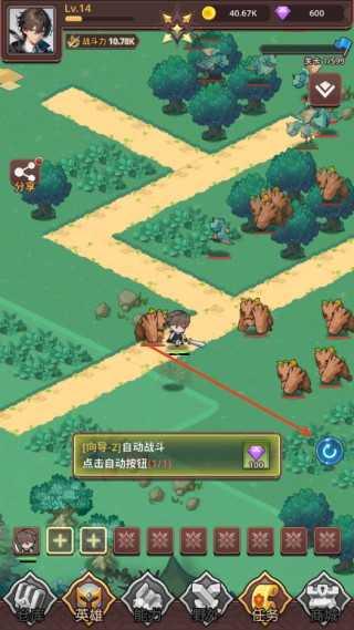 2.遭遇敌人时,点击右下角的自动战斗按键即可开启自动战斗模式。