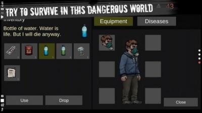2.点击"NewGame"进入游戏,打开背包,你可以看到自己的装备,疾病等等。