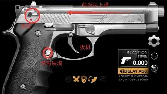 4、手枪:手枪比较特别,打完子弹后要将卡槽放下来才能继续装弹射击。