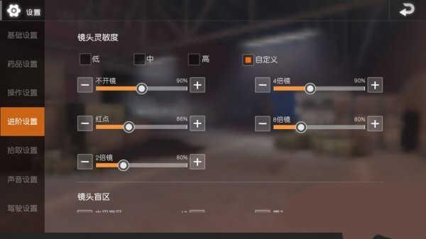 进阶设置,先选择低中高其中的一个灵敏度,在比赛中根据自己在调整适合自己最舒服的一些灵敏度。我选择的大家也可以尝试下。