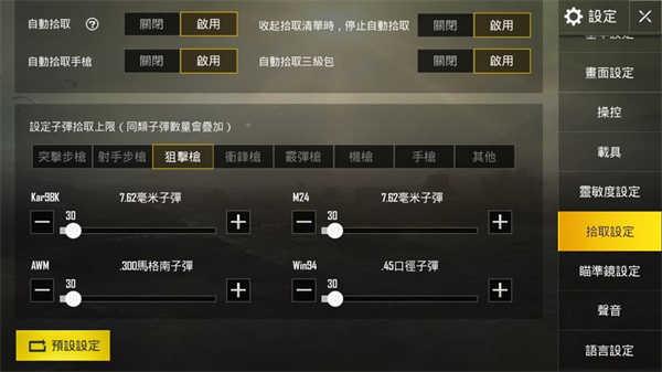 而拾取设定方面我是比较懒,会把自动拾取开启,不用每样东西都要自己捡。 但是要注意包包会不会捡太多用不到的倍镜,比如说你已经有红点、3倍、8倍镜了,但是自动拾取还是会帮你检起2倍、4倍、6倍镜,所以这些用不上的,自己要定时清理一下,把空间留给更有用的物品哦!