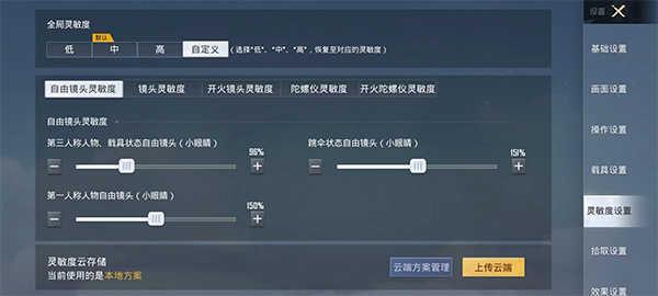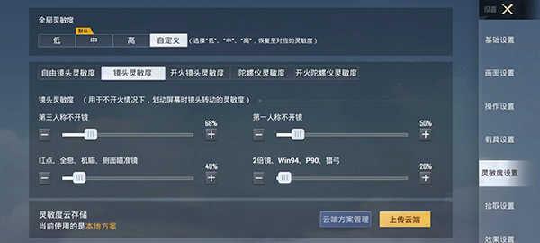 最主要要调的有四种设定:基本设定、灵敏度设定、拾取设定,还有「操控」