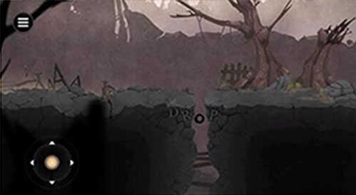 走到这形成一个单词“evolve”--进化。意思也非常简单,就是你现在已经是一个有身体的字母了。往前走了一小段路,背景后便有落石坠下,(或许是什么不明生物?)落石中间还夹有紫色,意味不明。