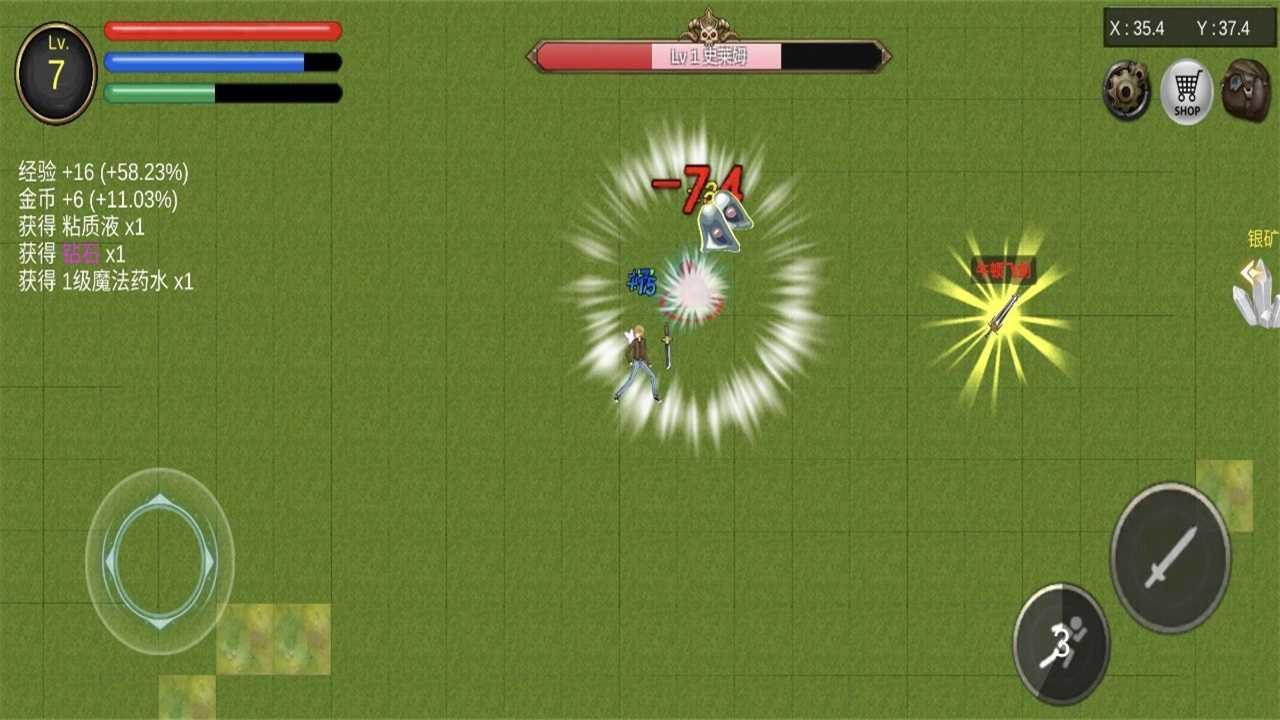 5、在前进过程中你会遇到缠人的史莱姆,不断点击右侧的攻击键就可以击败他们;