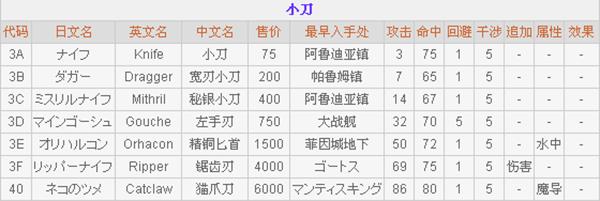 4、剑—菲利奥尼尔的初始使用的武器种类