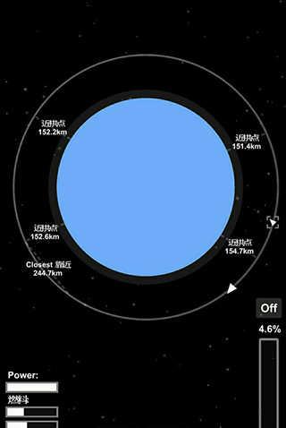 7、找到轨道后然后将燃料马力关闭,之后等待对接月球即可,玩家可以选择加速时间;