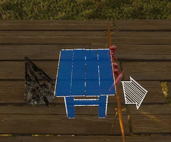 2、而用火圈烤肉排和其他食物则不需要蓝图,先放火圈蓝图,接着把烤架的蓝图放在火圈蓝图的上方居中位置,之后将2个蓝图所需要的材料填充进去,制作完成后,将食物直接摆放在烤架上,然后点火等6分半左右即可!