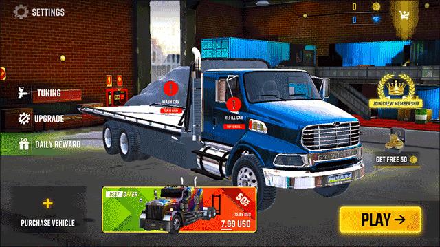 同时建立你自己的货运帝国! 完成任务、赚取金钱并解锁新的卡车以添加到你的车队中。尝试去做一些具有挑战性的合同,成为美国卡车模拟器PRO世界中货运大亨,管理好你所赚取的资源,跟着你的卡车帝国一起成长!!!!