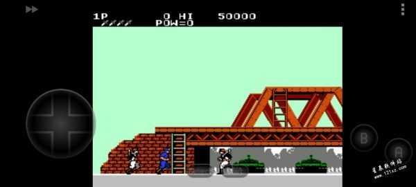 绿色兵团第一关刚刚开始时是在铁路桥下。首先出现的是一些小兵,只要辨清小兵过来的方向就能顺次击败他们,很容易。在一个屏幕内小兵的出现其实是有规律的。首先击败屏幕右方过来的一个慢速奔跑的小兵,再击败屏幕左方过来的连续两个快速奔跑的小兵后马上前进离开这一屏幕。一个屏幕以内小兵出现的次数是无限的,这是绿色兵团这个游戏最保守的打法,也是最稳的打法,它适合此游戏的所有障碍关。因此对于新玩家来说,如果觉得心里没底,完全可以利用小碎步移动距离,一个一个拖,你打一群没把握,打一个总可以吧,况且因为此游戏没有时间限制。