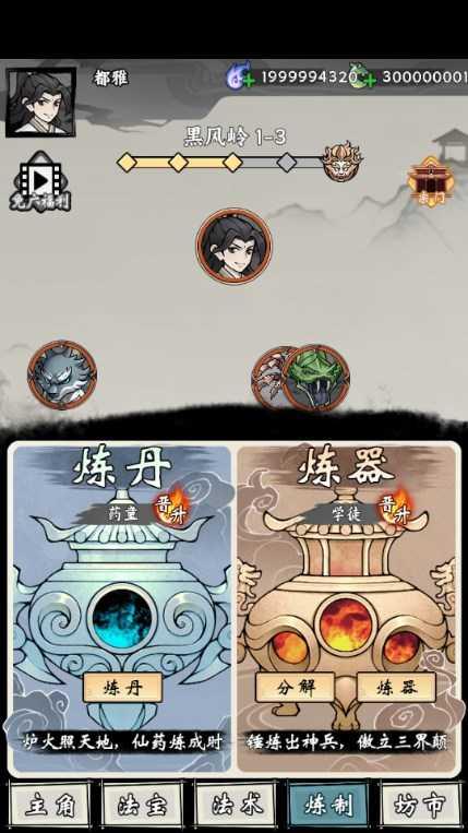 3.炼制丹药消耗放置战斗所获得的药材,其他药材坊市也有一些出售。炼制出的丹药给主角服用增加属性,在很多修仙类游戏中都很常见。