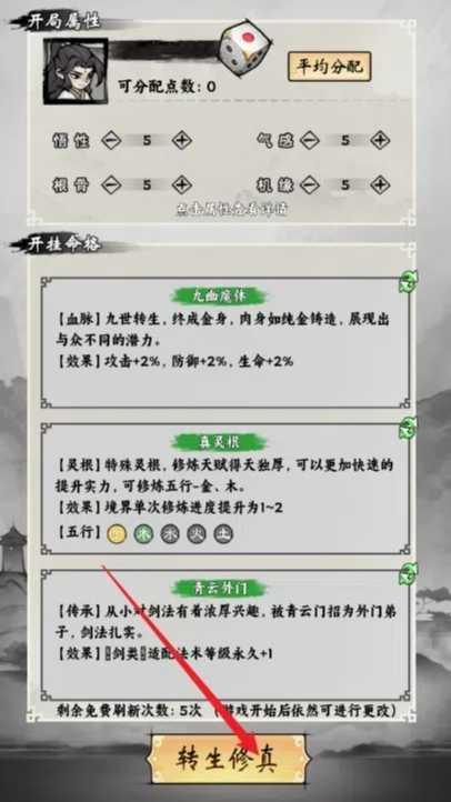 2.你首先需要创建一个自己的角色,并为其分配属性以及命格。