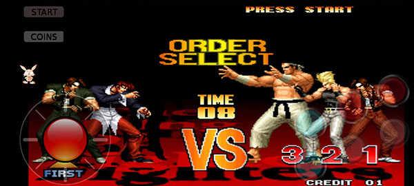 1、首先下载安装本站提供的拳皇97屠蛇版手机版,投币,确认开始游戏,选择我们喜欢的英雄