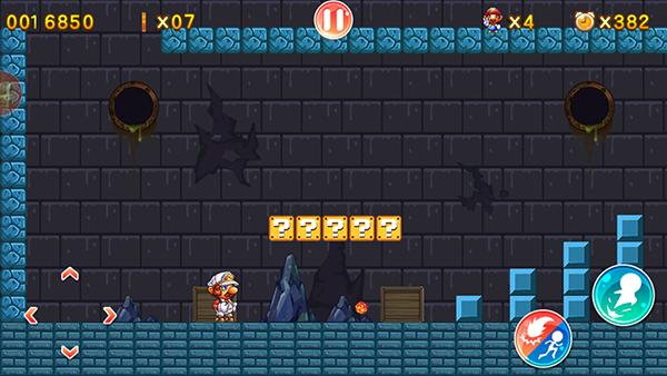 3、跳跃撞击游戏中的问号方块可以获得积分或者道具,蘑菇道具能让人物长大,鲜花可以获得射击能力。