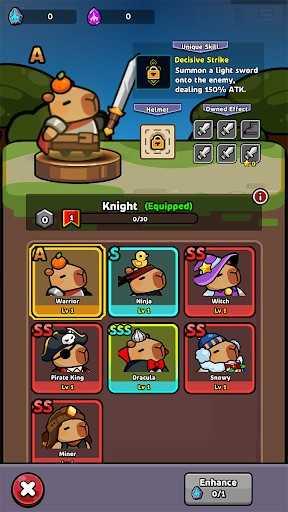 1.为你的卡皮巴拉选择一个适合的职业,你可以从忍者、骑士、女巫、德古拉等职业中选择一个。