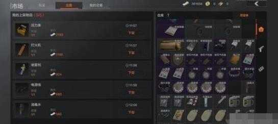 东西带出来之后,就是售卖了,市场最多可以上架五种物品,所以要合理规划优先售卖的物品,一般关于任务的物品,市场变动会比较大,但是紫和金的变化一般不会很大,可以考虑晚点上架。
