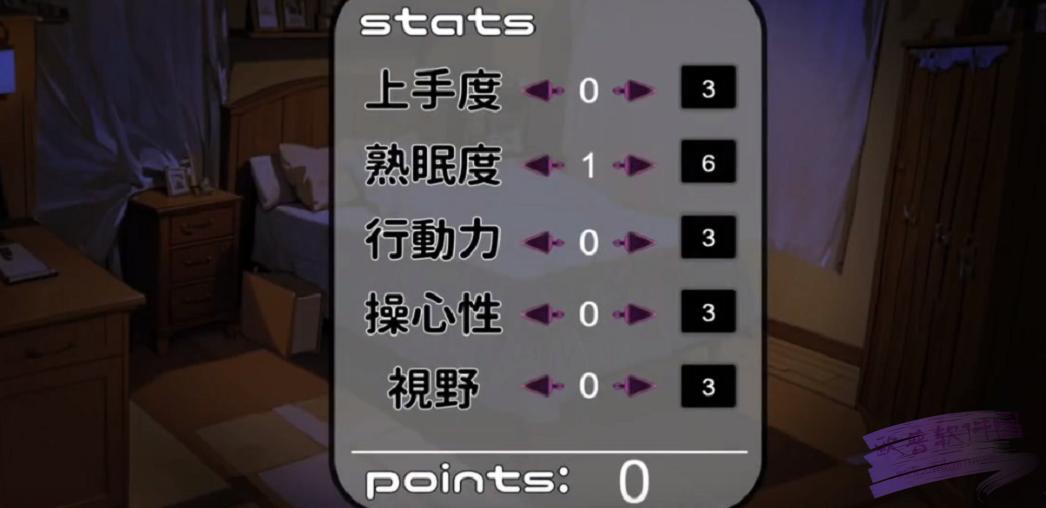 2.点数:用来升级基础数值,在游戏中取得“阶段成果”时会增加