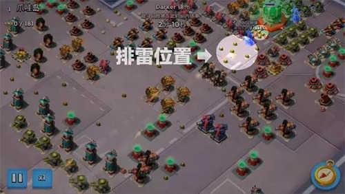 (2)拆火箭、激光:将部队引导石材库上方,再扔一个引导至激光,烟雾散去后,开启群体嘲讽,快速地拆掉激光;然后妹妹又将目标选定在下方火箭(注意这个火箭事先用火炮炸残血),迅速拆除火箭。