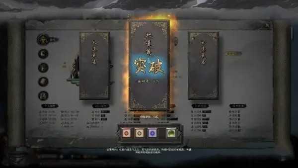 地道筑基需要一种属性的灵气做主材料,辅材料为地坤丹,服用可以增加成功率,成功后有三个属性选项。