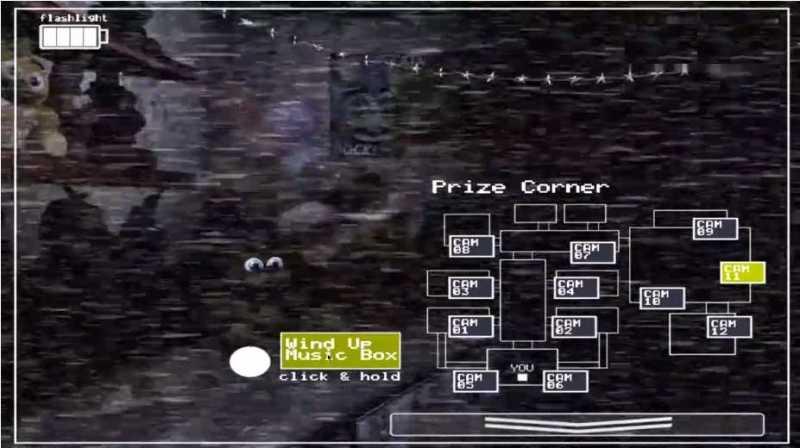 7、整个夜晚这三只玩具随时有可能暴动,玩家需要不断查看通风口和正门,并及时去11号房给八音盒上发条。