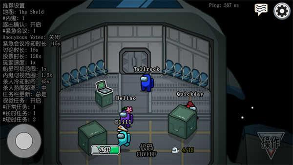 右下角为当前玩家可以进行的操作,好人只能够使用互动完成任务,或者在看见尸体后发动警报。在并没发现尸体但好人识别出内鬼后,可以与房间中央的紧急按钮互动发起会议。