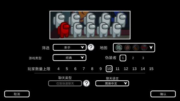 创建房间界面可以选择修改地图、内鬼数量和玩家数量等。