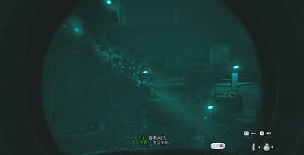 拿起望远镜关注大门(数字键4),发现有车辆进入。