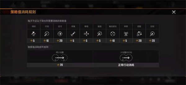 记住计划圈是所有行动的第一步!无论采集、战斗、运输、支援,都需要先进行计划圈放置!行动是需要消耗策略值,策略值上限150,每小时恢复20.