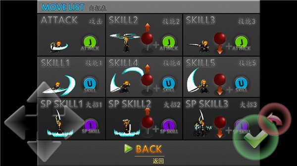 ←→移动,↓防御,1近攻,2跳,3冲刺,4远攻,5必杀(1格气),6召唤援助(1格气)