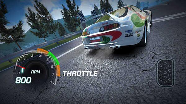 滑动控制模式下玩家将用手指代替方向盘和油门。在左侧屏幕左右滑动可以控制赛车的行进方向,右侧屏幕上下滑动控制赛车的加速减速。