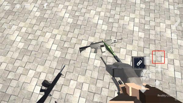 1.想要拿枪就必须先找到一把枪,找到枪后需要将准心放到枪上,这时屏幕左边会出现一个手指按钮,按住手指按钮即可拾取;